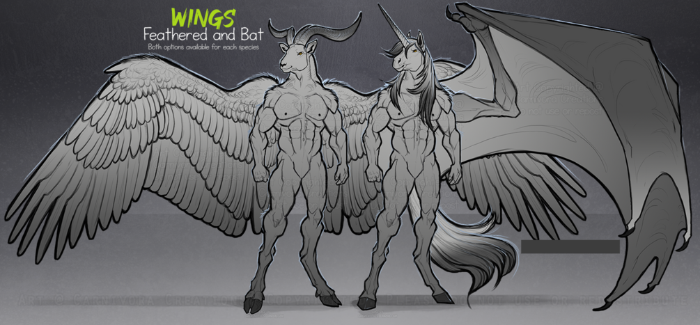 -Wolf: possibly add long-mane option, longer ears, maybe optional fangs, alternate head/expression. Also need to add wing options for the newer wolf models, as-is I've not added them yet (but can be done by the user with the files if they want)!