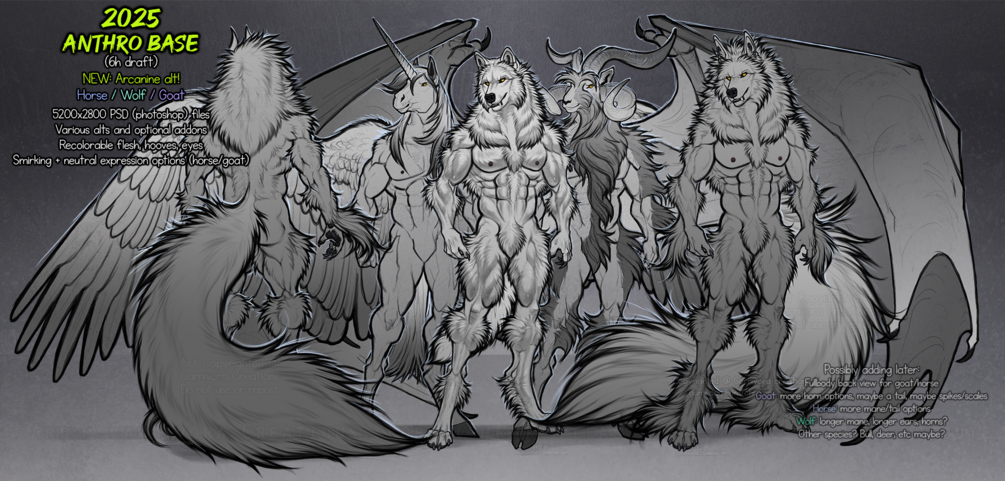 I have a watermark added to the base: please only remove it if you're going to credit me in the description of your work! You can link back to my gumroad, deviantart, bluesky, or furaffinity !