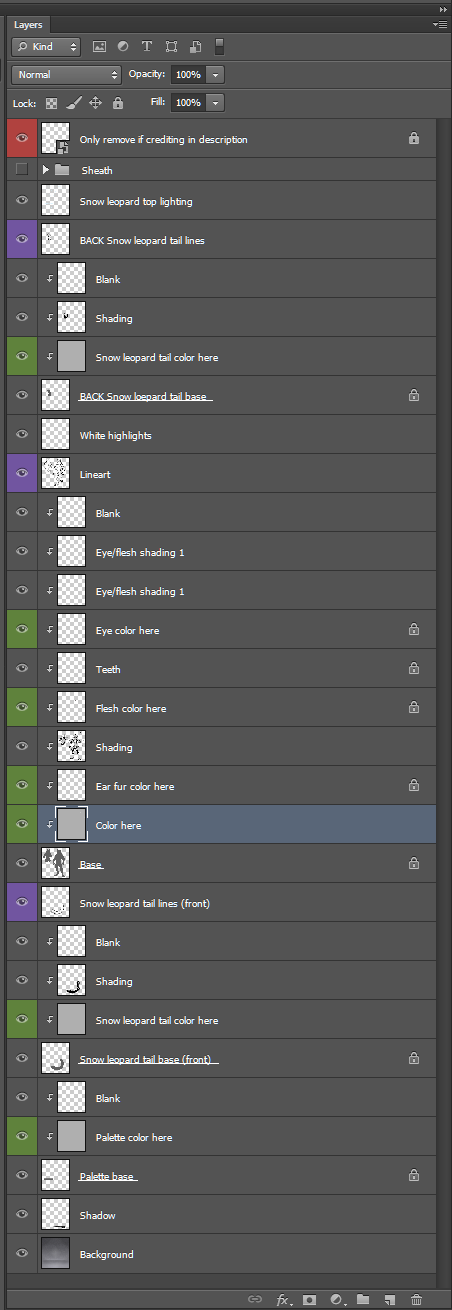 - Separate layers to color the tail(s) and inner-ear fur on to make it easier!
